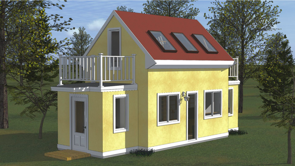 Small Footprint Eco Home designs are typically 1-1/2 story with 3ft knee walls upstairs (north and south walls) and 12/12 pitch roofs with skylights and optional thermal or electric solar systems. In our Small Footprint Eco Homes the insulation line typically follows the roof line, so all of the interior space below the rafters is livable.